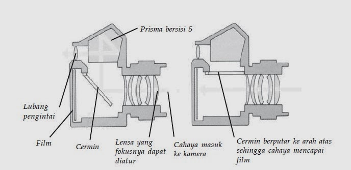 Alat optik yang memiliki mekanisme mirip dengan mekanisme kerja mata. Terdiri dari film, lensa kamera ( lensa cembung ), diafragma, pengatur fokus, pengatur kecepatan pembukaan dan penutupan layar. Sifat bayangan kamera adalah nyata, terbalik, dan diperkecil.