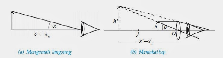 Pada Gambar (b), seorang pengamat menggunakan lup dimana benda