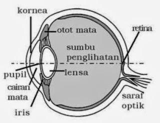 penting tersebut, antara lain, kornea, pupil, iris, aquaeus humour, otot