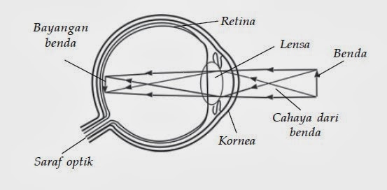 dibiaskan oleh lensa mata sehingga terbentuk bayangan pada retina. Oleh