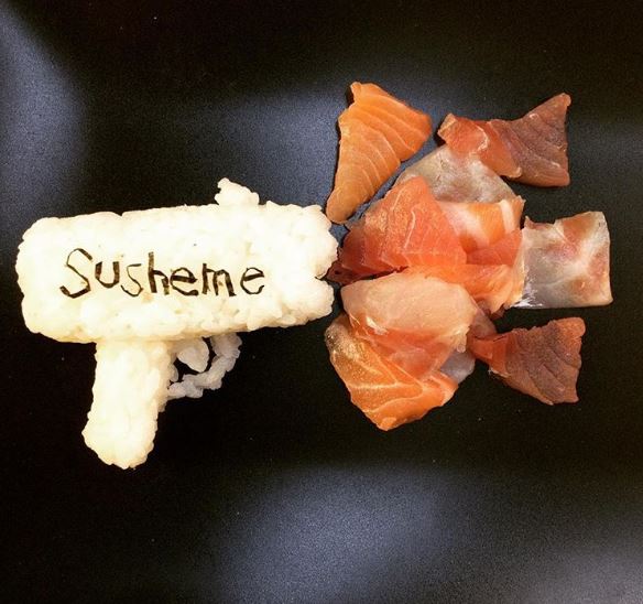 Sushi yang dibuat menggunakan bahan yang sama pada sushi umumnya, hanya saja karyanya yang unik dan berbeda dari para koki sushi lainnya.